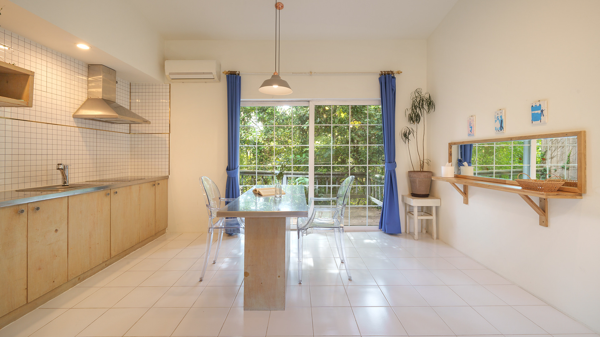 - 집기품목 : 욕실용품, 남녀공용, TV, 금연, 냉장고, 에어컨, 전기밥솥, 취사시설/도구, 식탁, 전자레인지, 화장대, 드라이기, 테라스, 샴푸, 바디워시, 개별바비큐, 일산화탄소 감지기, 화재 감지기, 산전망